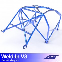 AST Weld In V3 Überrollkäfig mit 8 Punkten an der Rohkarosserie. Die Verstärkungsplatten bestehen aus 3 mm dickem Stahl und werden speziell für jedes Auto entworfen und hergestellt, um maximale Sicherheit und Passgenauigkeit am Chassis zu erreichen. Der Überrollkäfig wird unlackiert in einem Schweißsatz geliefert und besteht aus einem Hauptbügel mit 45 mm Durchmesser aus E355-Stahl. Der Rest der Struktur besteht aus 40 mm dickem E355-Stahl.