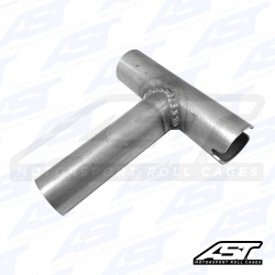 Schweißnahtprüfrohr, bestehend aus zwei Stücken E355-Stahlrohr, die zusammengeschweißt ein "T" bilden. Es dient zur Durchführung einer destruktiven Prüfung, um die Qualität und Beständigkeit der Schweißnaht zu bewerten.