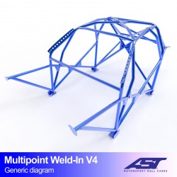 Arceau AST Multipoint Weld In V4 avec 10 points sur la carrosserie. Les plaques de renfort sont en acier de 3 mm d'épaisseur et sont conçues et fabriquées spécifiquement pour chaque voiture, assurant un maximum de sécurité et de montage sur le châssis. La cage de protection est livrée en kit de soudage, et non peinte, et est composée d'un arceau principal de 45 mm de diamètre en acier E355, le reste de la structure est en acier E355 de 40 mm de diamètre.