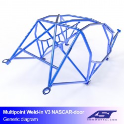Arceau AST Multipoint Weld In V3 de sécurité de style porte NASCAR avec 10 points à la carrosserie conçue pour une utilisation en Drift. Les plaques de renfort sont en acier de 3 mm d'épaisseur et sont conçues et fabriquées spécifiquement pour chaque voiture, assurant un maximum de sécurité et de montage sur le châssis. La cage de protection est livrée en kit de soudage, et non peinte, et est composée d'un arceau principal de 45 mm de diamètre en acier E355, le reste de la structure est en acier E355 de 40 mm de diamètre.